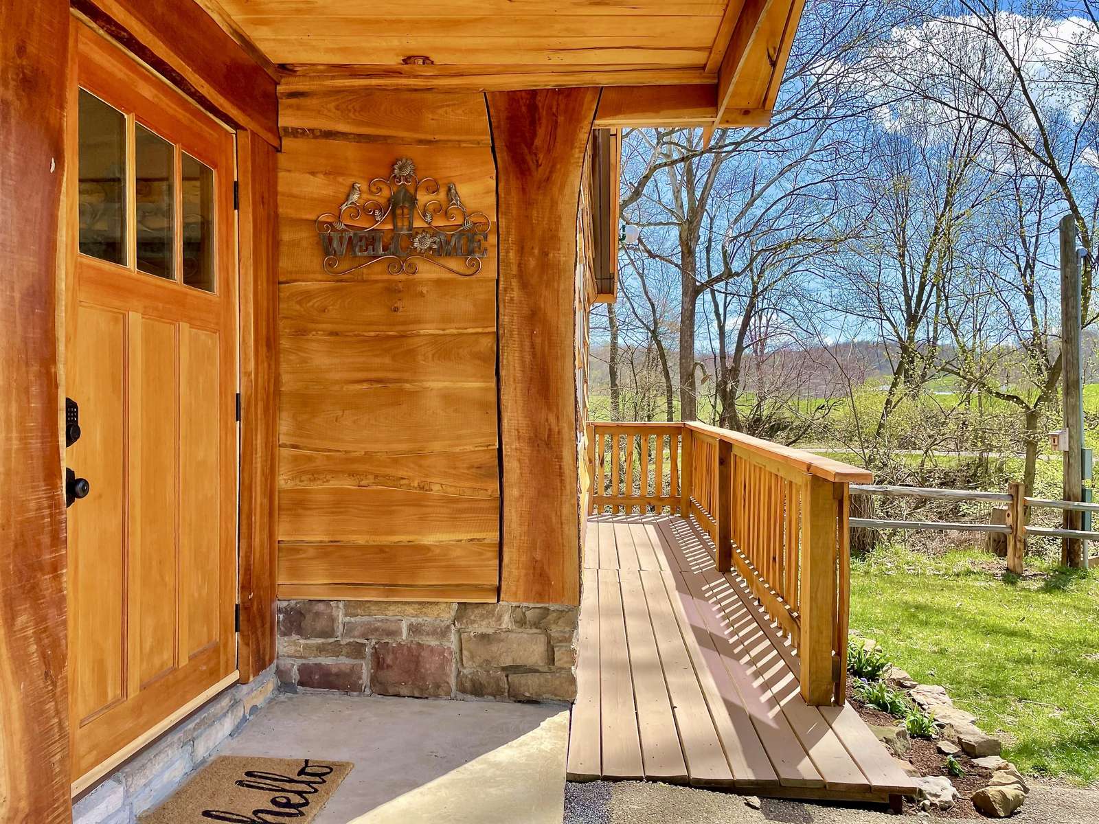 Cozy 4 Person Cabin with hot tub over looking a wooded hollow.